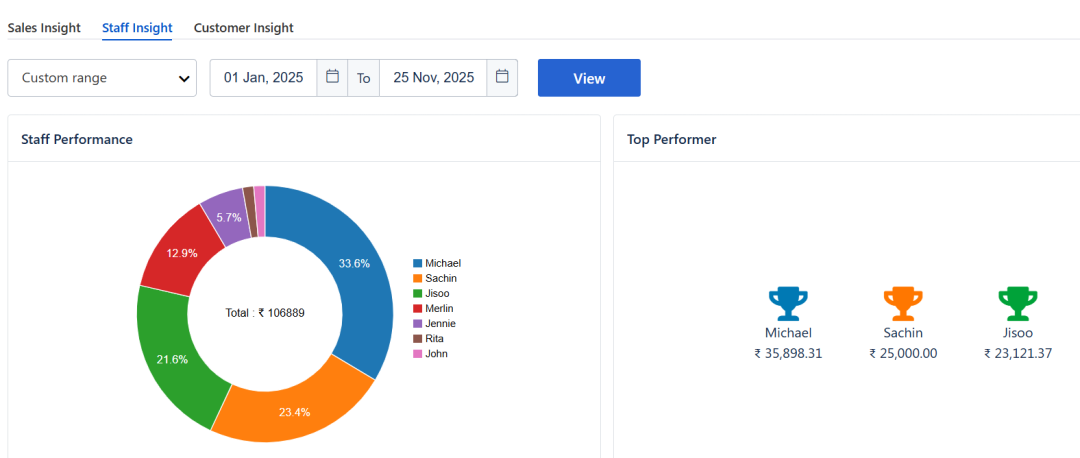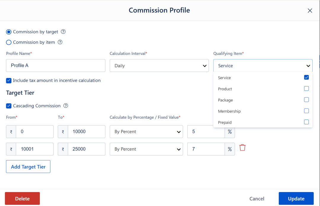You can enable cascading commission, which splits staff earnings across slabs and applies percentages accordingly, ensuring fair and accurate incentives even when targets are crossed.